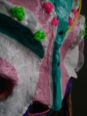 In my observation, “gabberen” originated from Dutch clog dancing, a tradition that reflects a rich cultural history worth exploring. The dance scene, a musical style originating in the Netherlands, is now well known worldwide. In the Netherlands, it’s not limited to an adaptation of clog dancing; many ways to experience this hard-beat music have emerged. One of these styles takes root in the underground and is characterised by influences from many global cultures. To complement this ritual, I present these masks, inspired by cultures that coexist with pacha mama.